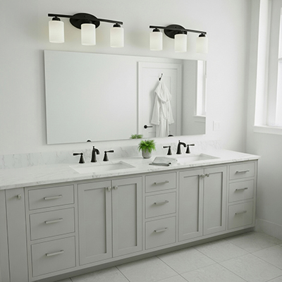 The signature curving arms of the Dixon 3-Light Vanity for HomePlace gives any space a graceful feel. The multiple finish options appeal to different design styles for an easy, yet elegant transitional touch. Vanity is also available in 2-Light, 4-Light, and 5-Light options.