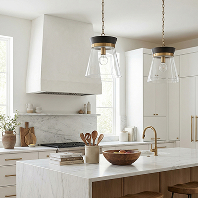 Effortlessly blending Matte Brass with black-stained mango wood, the Finn Pendant creates a sophisticated aesthetic. The crisp angles paired with clear glass add elegant dimension to this classic style.