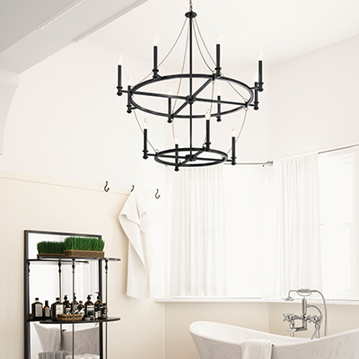 Boasting an elegant barrel shape and airy form, the Lancaster 12-light chandelier embodies the modern farmhouse aesthetic. Perfect for a living room, dining room or great room, this tiered chandelier draws from Tuscan and Spanish design elements and melds them with industrial detailing for distinctive character.