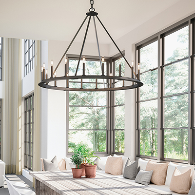 Inspired by industrial design, the Pearson 20-Light Chandelier delivers charming farmhouse character. The Black Iron finish adds a modern touch, while the simple circular form creates an all-around classic style.