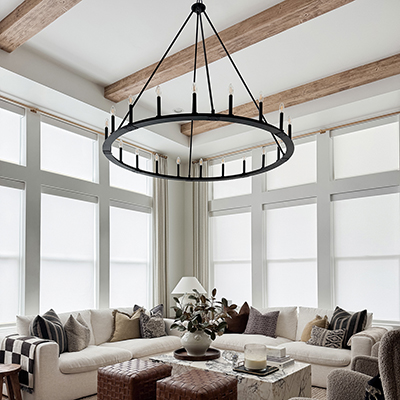 Inspired by industrial design, the Pearson 20-Light Chandelier delivers charming farmhouse character. The Black Iron finish adds a modern touch, while the simple circular form creates an all-around classic style.